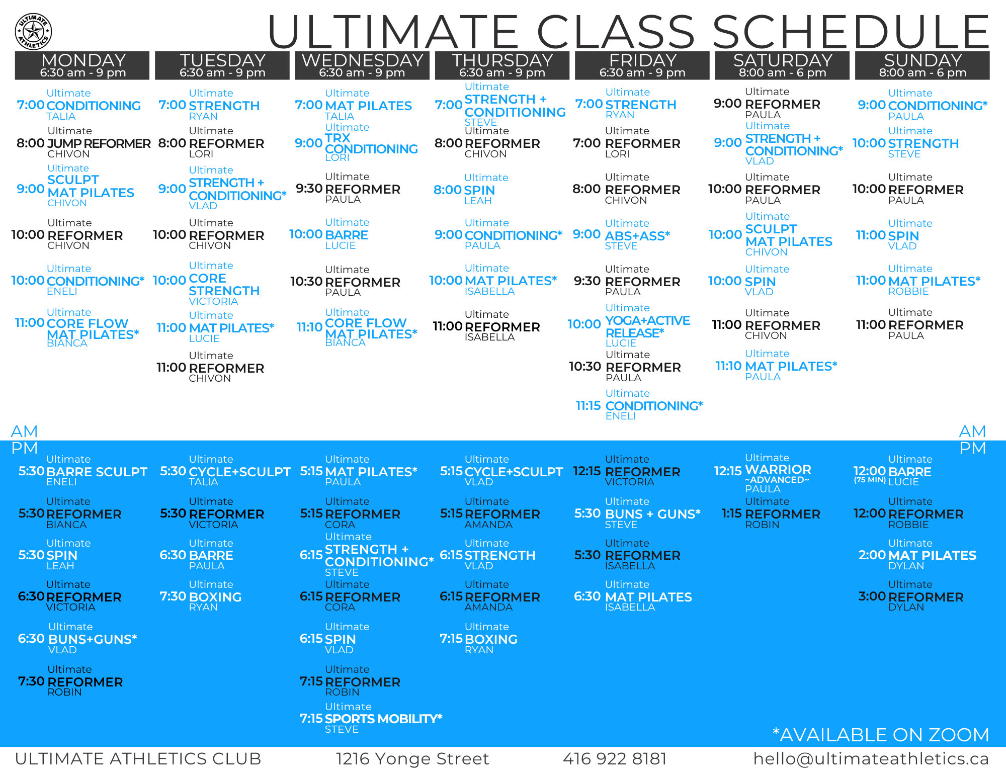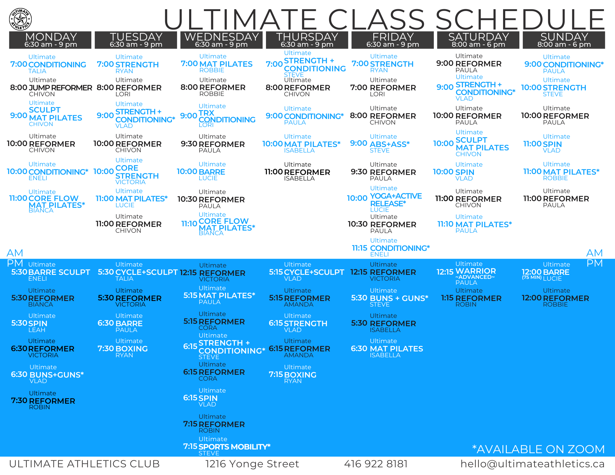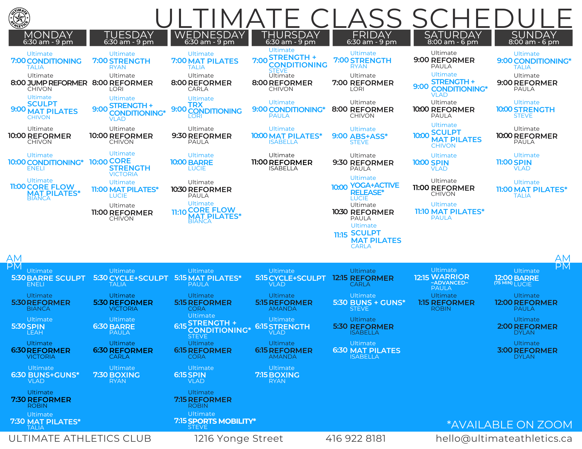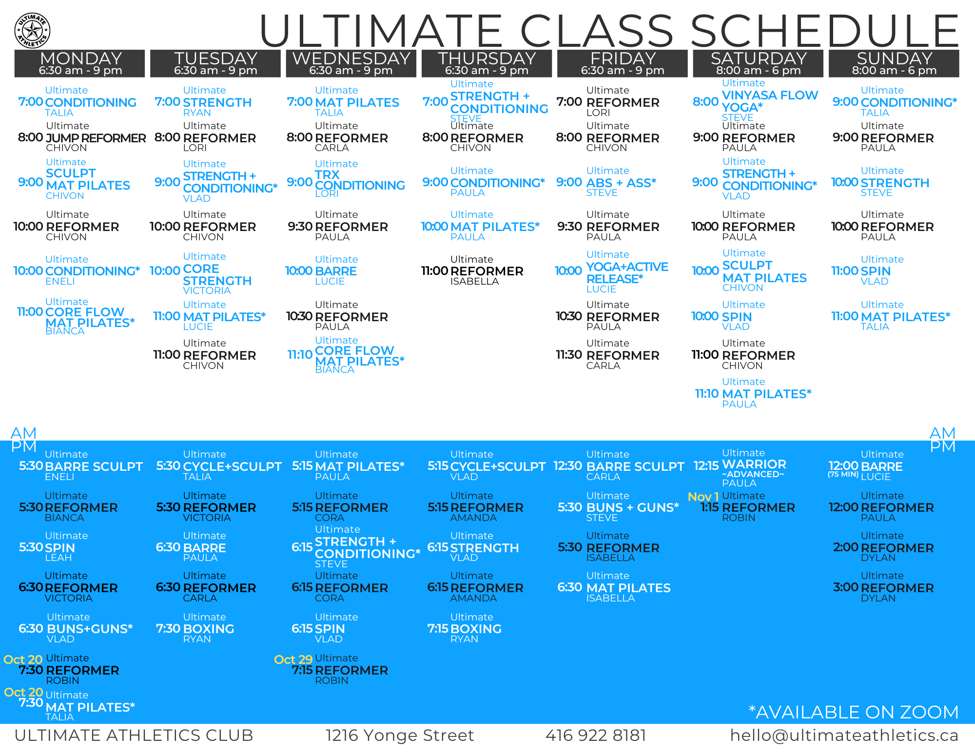ULTIMATE CLASSES & WEEKLY SCHEDULE